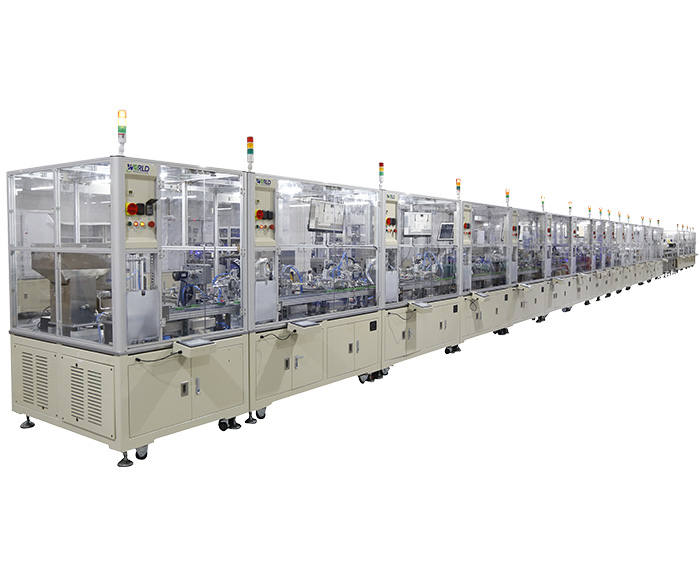 2.集成了弹片绞合、定位组装、铁芯绞合、落差检测、调整、点胶、烘烤、热铆、测试、除尘、入壳、端子焊锡、半成品测试、真空检漏、成品测试、激光打标等组装工序;